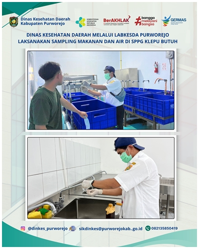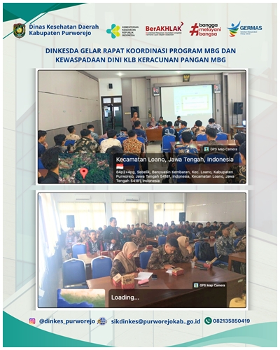 Dinas Kesehatan Daerah Kabupaten Purworejo memberikan materi edukasi kesehatan dan keamanan pangan dalam kegiatan pelatihan yang diselenggarakan oleh SPPG Tersidilor, Kecamatan Pituruh, pada Kamis, 8 Januari 2026, bertempat di Dapur SPPG Tersidi lor. Dalam pelatihan tersebut, narasumber dari Dinas Kesehatan menyampaikan materi terkait penyakit yang dapat ditimbulkan akibat pengolahan makanan yang tidak bersih dan tidak memenuhi standar higiene sanitasi. Beberapa penyakit yang disoroti antara lain diare, keracunan makanan, tifoid, cacingan, serta infeksi saluran pencernaan yang berisiko tinggi pada balita, ibu hamil, dan kelompok rentan lainnya termasuk anak sekolah.