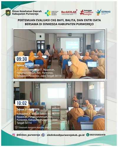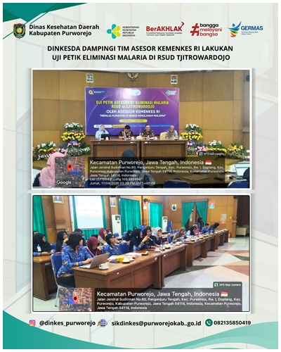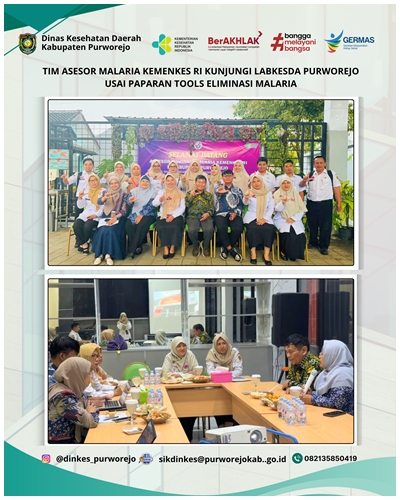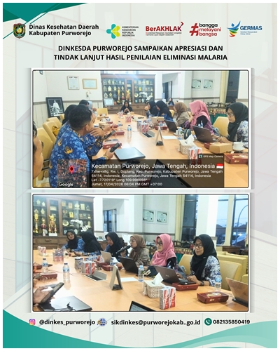 PURWOREJO, 15 APRIL 2026 – Pemerintah Kabupaten Purworejo menerima kunjungan Tim Asesor Eliminasi Malaria dari Kementerian Kesehatan RI dan Komisi Ahli Malaria Nasional dalam rangka pelaksanaan Assessment Eliminasi Malaria Kabupaten Purworejo Tahun 2026. Kegiatan ini menjadi tahapan penting dalam proses verifikasi untuk memperoleh sertifikat eliminasi malaria. Pertemuan ini dihadiri oleh unsur Kementerian Kesehatan RI, Komisi Ahli Malaria Nasional, Dinas Kesehatan Provinsi Jawa Tengah, Dinas Kesehatan Daerah Kabupaten Purworejo beserta Tim Eliminasi Malaria, Camat, Direktur Rumah Sakit dan Kepala Puskesmas se Kabupaten Purworejo serta lintas sektor dan fasilitas pelayanan kesehatan yang berperan dalam program penanggulangan malaria di Kabupaten Purworejo.