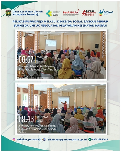 Purworejo, Dinas Kesehatan Daerah Kabupaten Purworejo melalui Tim Kerja Kesehatan Keluarga (KESGA) melaksanakan kegiatan Desk Data Kesehatan Reproduksi (Kespro) pada Senin, 5 Januari 2026. Kegiatan ini bertujuan untuk melakukan sinkronisasi dan validasi data capaian pelayanan kesehatan keluarga sebagai bagian dari penguatan sistem informasi dan perencanaan program. Desk data mencakup capaian pelayanan kesehatan ibu hamil, persalinan, ibu nifas, bayi baru lahir (BBL) serta pelayanan kesehatan reproduksi, meliputi keluarga berencana (KB) dan pelayanan calon pengantin (Catin). Kegiatan diikuti oleh pengelola program KIA dan Kespro puskesmas se-Kabupaten Purworejo bersama Tim Kerja KESGA Dinas Kesehatan Daerah Kabupaten Purworejo.