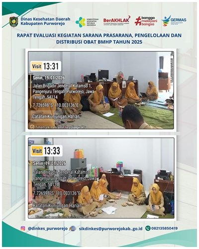 Purworejo, Dinas Kesehatan Daerah Kabupaten Purworejo melaksanakan kegiatan Konsolidasi Laporan Persediaan Obat Tahun 2025 pada Senin, 5 Januari 2026. Kegiatan ini bertujuan menertibkan dan memantapkan data transaksi mutasi obat sebagai dasar penyusunan laporan akhir tahun yang akurat dan dapat dipertanggungjawabkan. Kegiatan diawali dengan pembukaan oleh Kepala Dinas Kesehatan Daerah Kabupaten Purworejo, kemudian dilanjutkan dengan sesi konsolidasi data transaksi mutasi obat Tahun 2025 sesuai agenda yang telah ditetapkan. Proses konsolidasi dilaksanakan melalui diskusi teknis dan pendampingan langsung kepada pengelola obat.