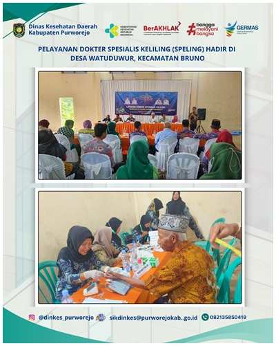 Dinas Kesehatan Daerah Kabupaten Purworejo melaksanakan kegiatan SPELING (Spesialis Keliling) sebagai bagian dari Program Gubernur Jawa Tengah pada Kamis, 18 Desember 2025 di Desa Somorejo, Kecamatan Bagelen. Kegiatan ini bertujuan memperluas akses layanan kesehatan spesialistik bagi masyarakat hingga tingkat desa. Pelaksanaan SPELING di Kabupaten Purworejo merupakan bentuk sinergi antara Pemerintah Provinsi Jawa Tengah, Pemerintah Kabupaten Purworejo, dan fasilitas pelayanan kesehatan. Dalam kegiatan ini, RS Aisyiyah Purworejo dan Puskesmas Dadirejo ditunjuk sebagai fasilitas kesehatan pelaksana layanan.